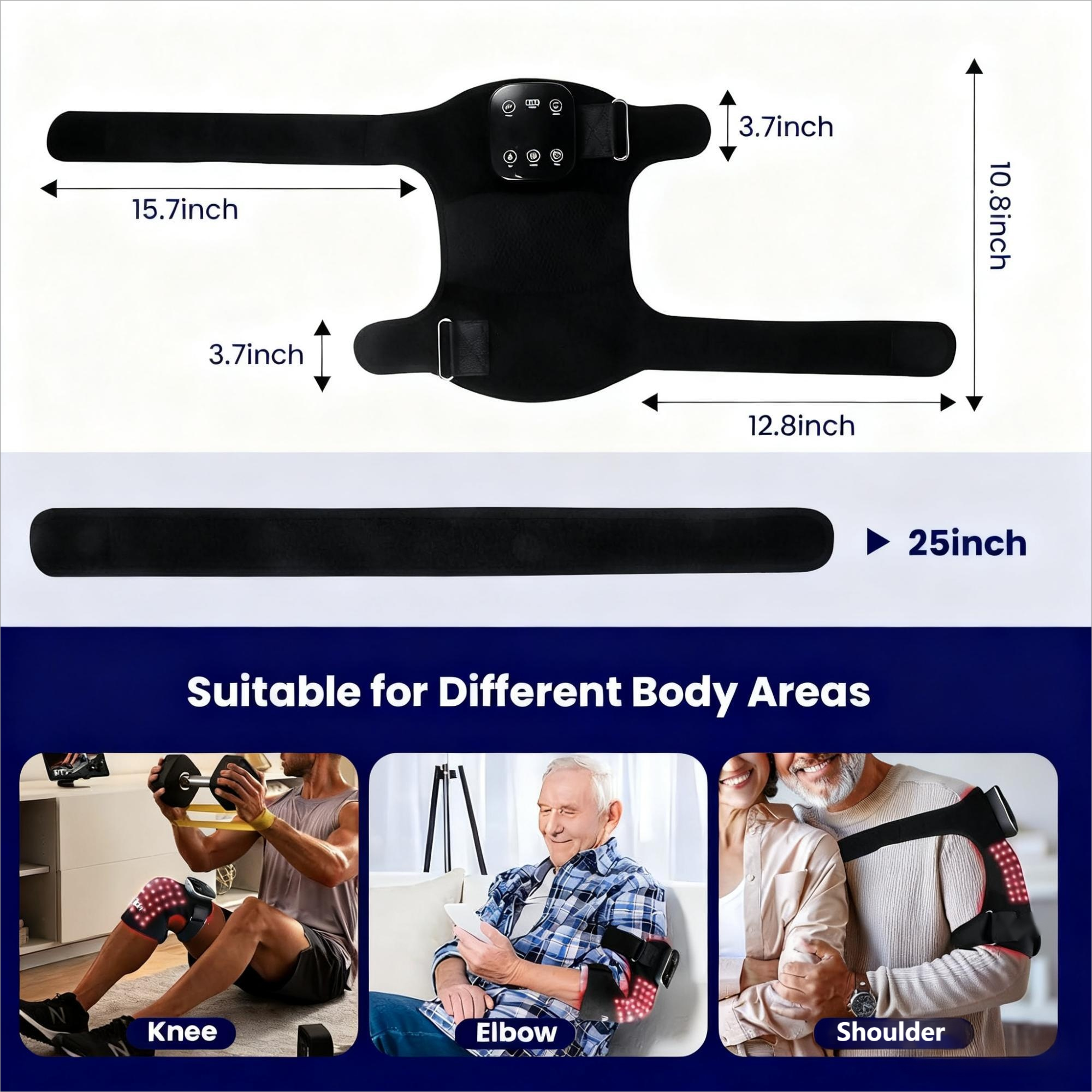 【Red Light Knee Therapy, Wireless and Portable】Featuring a built-in 5000mAh high-capacity battery and USB-C fast charging, the cordless design allows you to enjoy comfortable light therapy anytime, anywhere without the hindrance of wires. The 25-inch extension strap allows for easy adjustment to various joint positions, including elbows and shoulders, to meet diverse rehabilitation scenarios.
